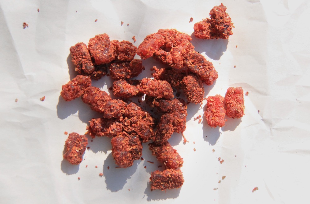 Las gomitas enchiladas de frutos rojos están elaboradas con jugo natural de uva y fresa, prebióticos de origen vegetal y colorantes naturales. Suave textura y un toque de chiles en polvo que aporta un picante ligero y delicioso. Un snack natural para disfrutar sin culpa.